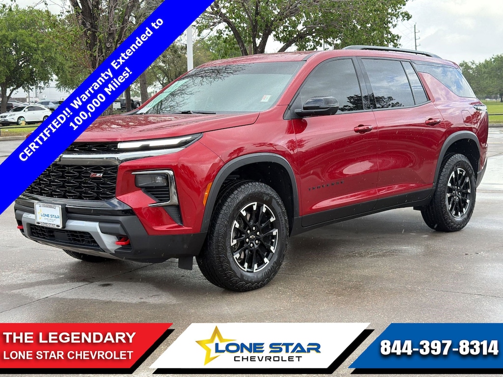 Certified Pre-Owned 2024 Chevrolet Traverse AWD Z71. 1-Owner. SAFETY PACKAGE, PREFERRED EQUIPMENT GROUP, FLOOR LINER PACKAGE, 17.7" Diagonal Advanced Color High-Contrast LCD Display, Natural Voice Recognition, Blind Spot Monitor, Front Collision Mitigation/Warning, Cross-Traffic Alert, Lane Departure Warning, Lane Keeping Assist, Aerial View Display, Back-Up Camera, Adaptive Cruise Control. Every Certified Pre-Owned vehicle is inspected and reconditioned by authorized trained technicians to meet with the highest industry standards. There's more. We look out for you even after your purchase with our exclusive CPO Scheduled Maintenance Program with two included maintenance visits! Chat, email or call today to schedule your test drive and experience the difference for yourself! Please verify any information in question with Lone Star Chevrolet, located at: 18800 Northwest Fwy, Houston, TX, 77065. Visit us online at www.LoneStarChevrolet.com or call (866) 665-9782.