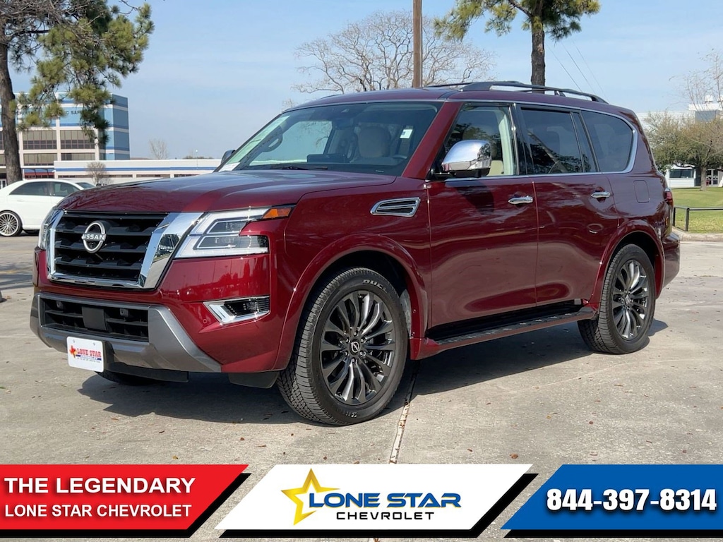 2024 Nissan Armada Platinum. Clean Carfax. CAPTAIN'S CHAIRS PACKAGE, CARGO PACKAGE, 4WD, Navigation System, Blind Spot Monitor, Front Collision Mitigation, Cross-Traffic Alert, Lane Departure Warning, Lane Keeping Assist, Aerial View Display, Back-Up Camera, Adaptive Cruise Control, USB Charging Cable Set, Heated Steering Wheel, Heated Front Seats. All recommended services are complete. Chat, email or call today to schedule your test drive and experience the difference for yourself! Please verify any information in question with Lone Star Chevrolet, located at: 18800 Northwest Fwy, Houston, TX, 77065. Visit us online at www.LoneStarChevrolet.com or call (866) 665-9782.